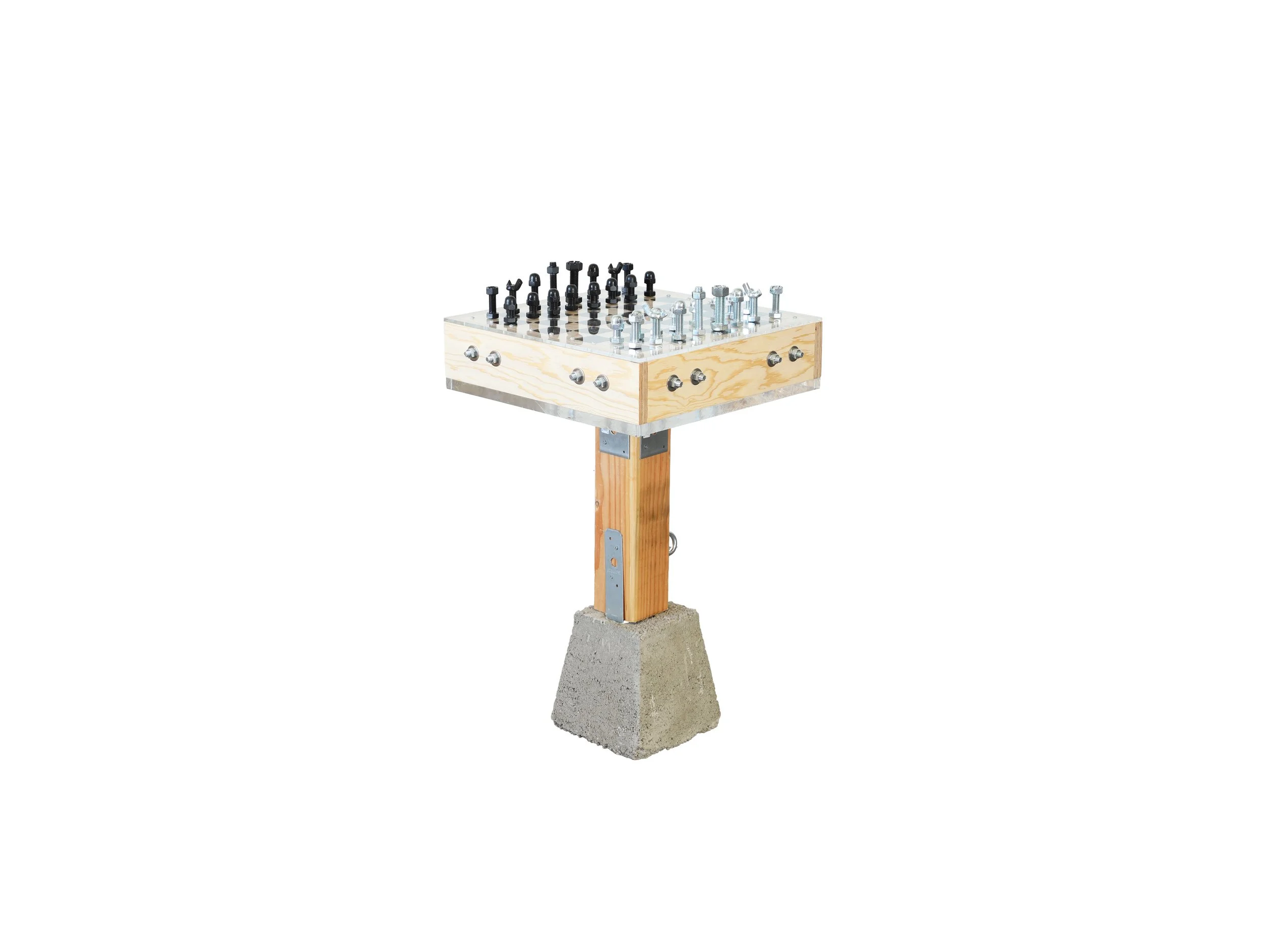 CHESS BOARD (2024) Wood, Plastic, Concrete, Metal, 18 x 18 x 30 inches, edition of 3 + 1 AP